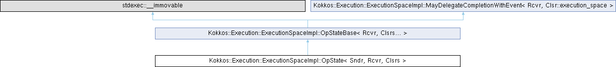 | Public Member Functions inherited from Kokkos::Execution::ExecutionSpaceImpl::OpStateBase< Rcvr, Clsrs... > | |