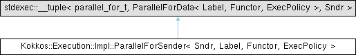 | using | base_t = stdexec::__tuple<parallel_for_t, ParallelForData<Label, Functor, ExecPolicy>, Sndr> |